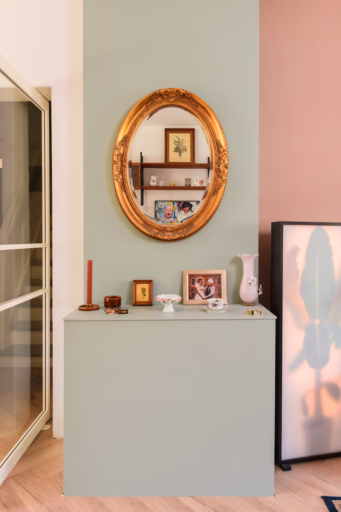 Bij Laura en haar gezin heb ik een advies aan huis gegeven. In 2 uur hebben we een kleurenplan gemaakt en hebben we het over meubels gehad. De keuken hadden ze zelf al uitgezocht en verder was alles net verbouwd en wit opgeleverd, een leeg canvas dus. De muur achter de tv meubel is in dezelfde kleur geverfd, de schouw heeft een kleur, de muur achter de strakke eettafel heeft een romantisch behang gekregen en de strakke keuken valt mooi op met een zalmroze kleur op de muur. Het is een mooie combinatie geworden van nieuw met vintage, romantisch met een stoer randje en helemaal passend bij de bewoners.