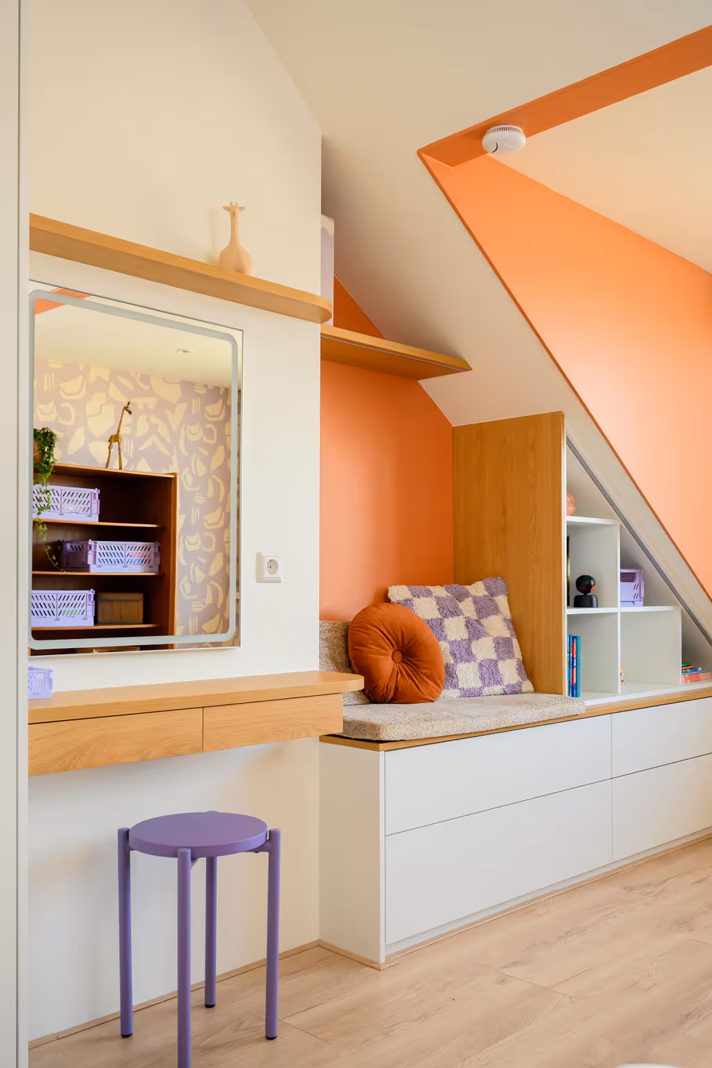 Als je een tiener bent, ben je wel toe aan een nieuwe kamer. Zo heb ik Sarei geholpen met haar nieuwe kamer. De basis was al goed met een hele mooie inbouwkast. We hebben een kleurenplan gemaakt en haar ouders zijn aan de slag gegaan. Ze hebben alle kleuren en meubels volgens plan uitgevoerd en het is ontzettend mooi geworden. Met deze kamer kan Sarei wel weer even vooruit!